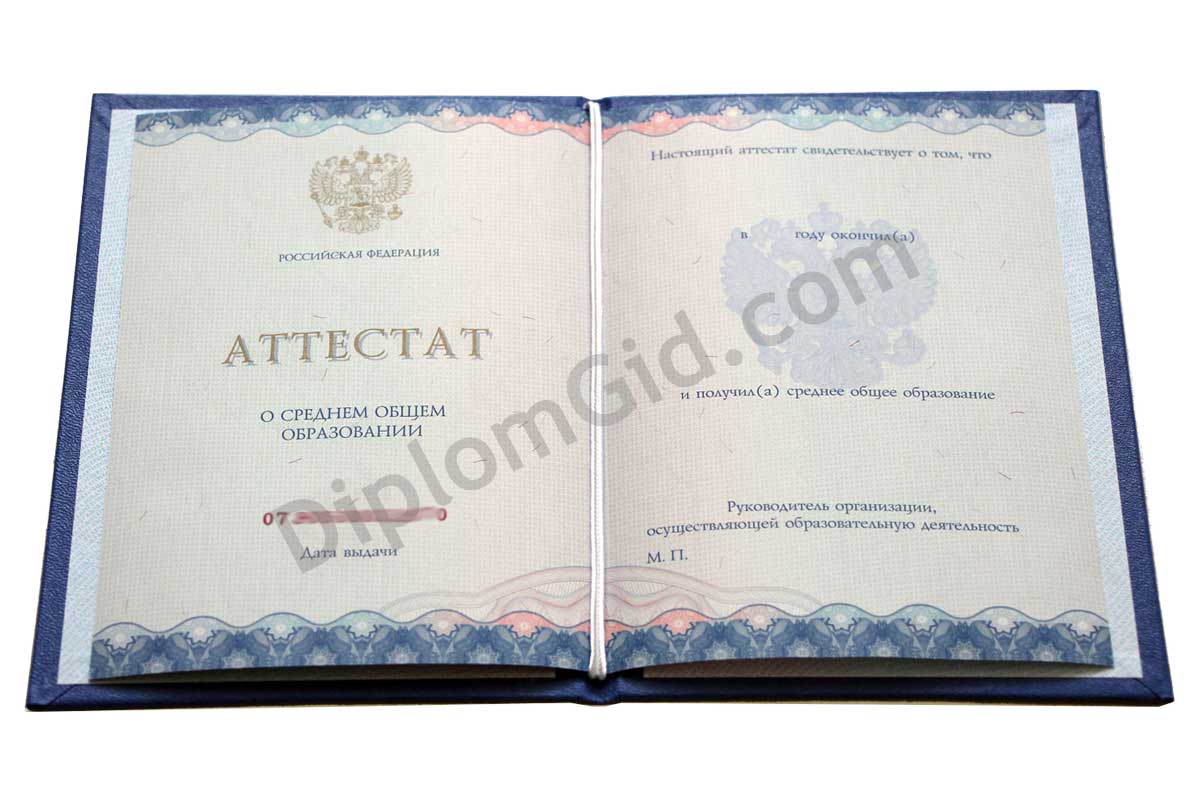 Аттестат школы об окончании 11 классов нового образца на государственном бланке. Образец «Гознак» со всеми степенями защиты. Выдача в 2014, 2015, 2016, 2017, 2018, 2019 годах.