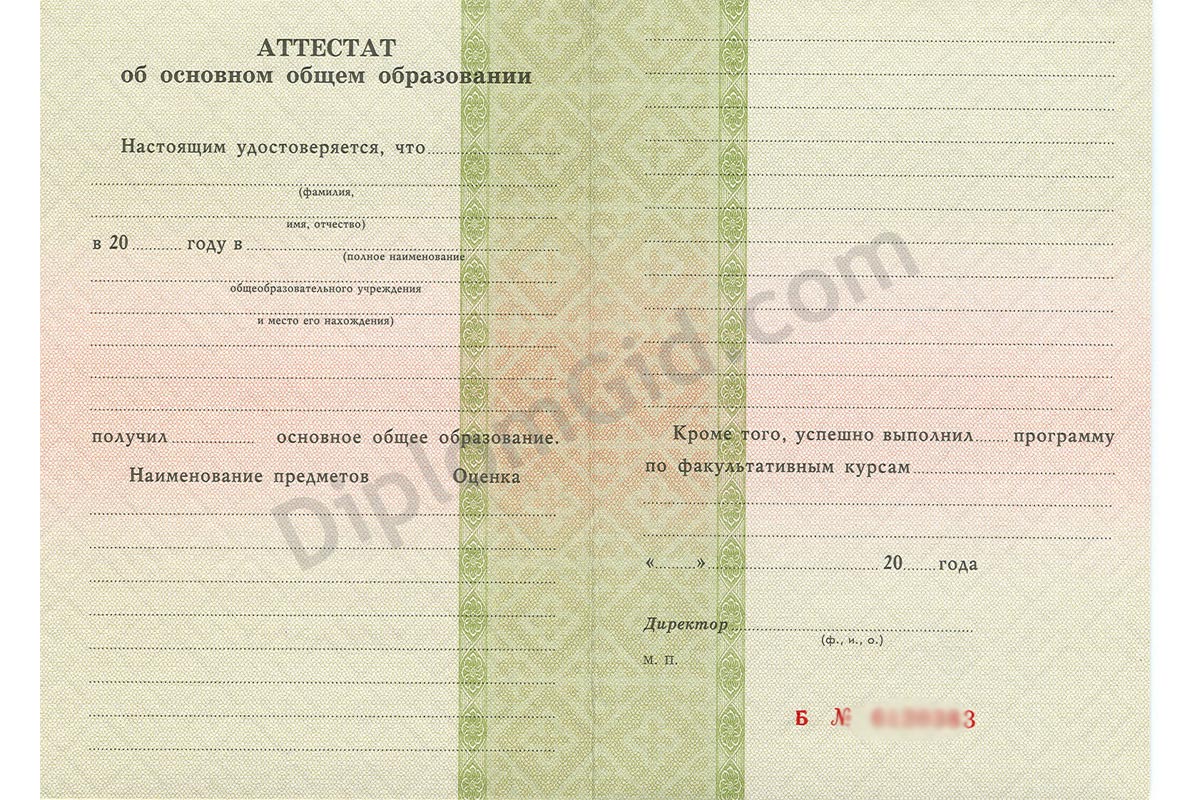 Аттестат школы об окончании 9 классов на государственном бланке ГОЗНАК со всеми предусмотренными степенями защиты. Выдача с 1995 по 2006 года. Заполним как в школе!